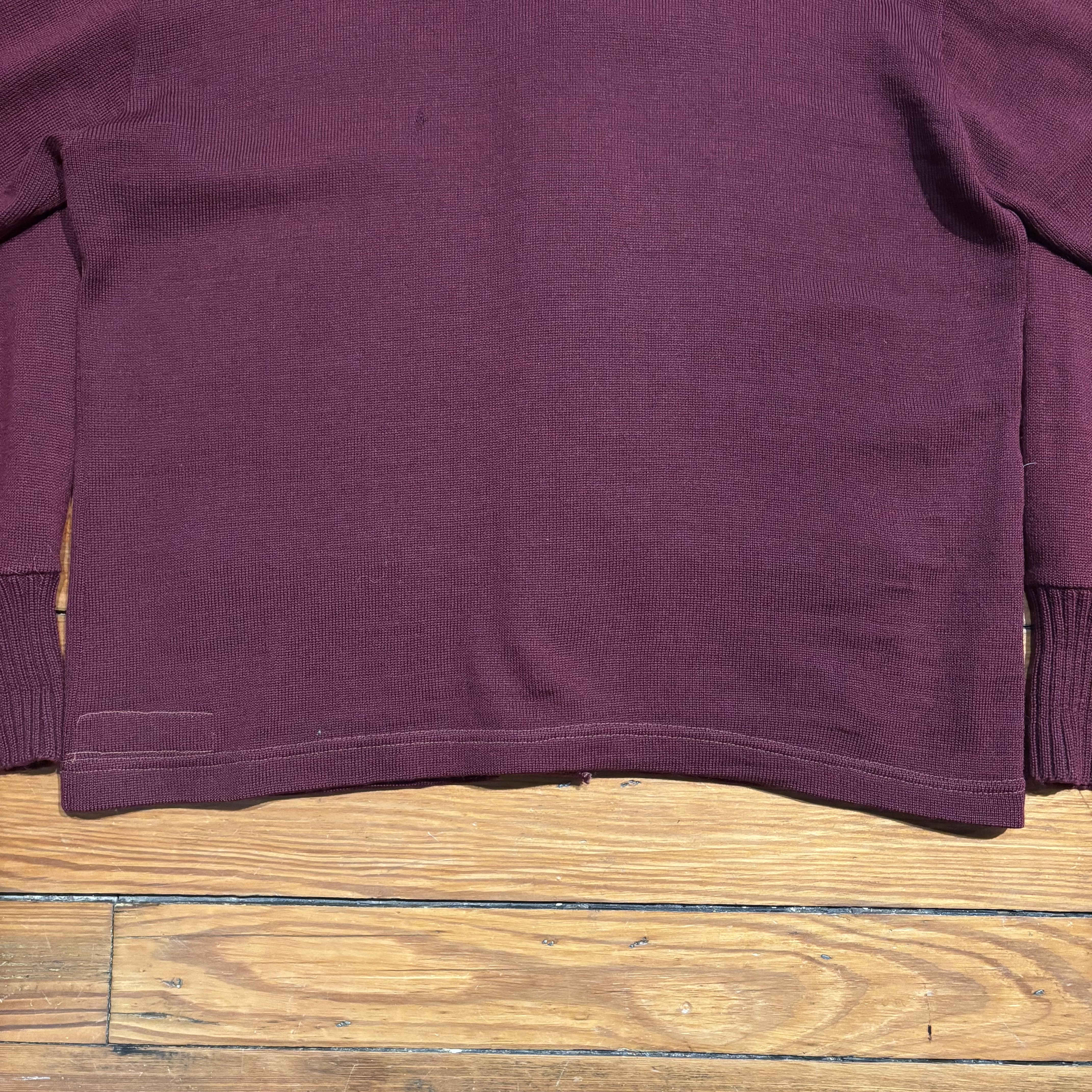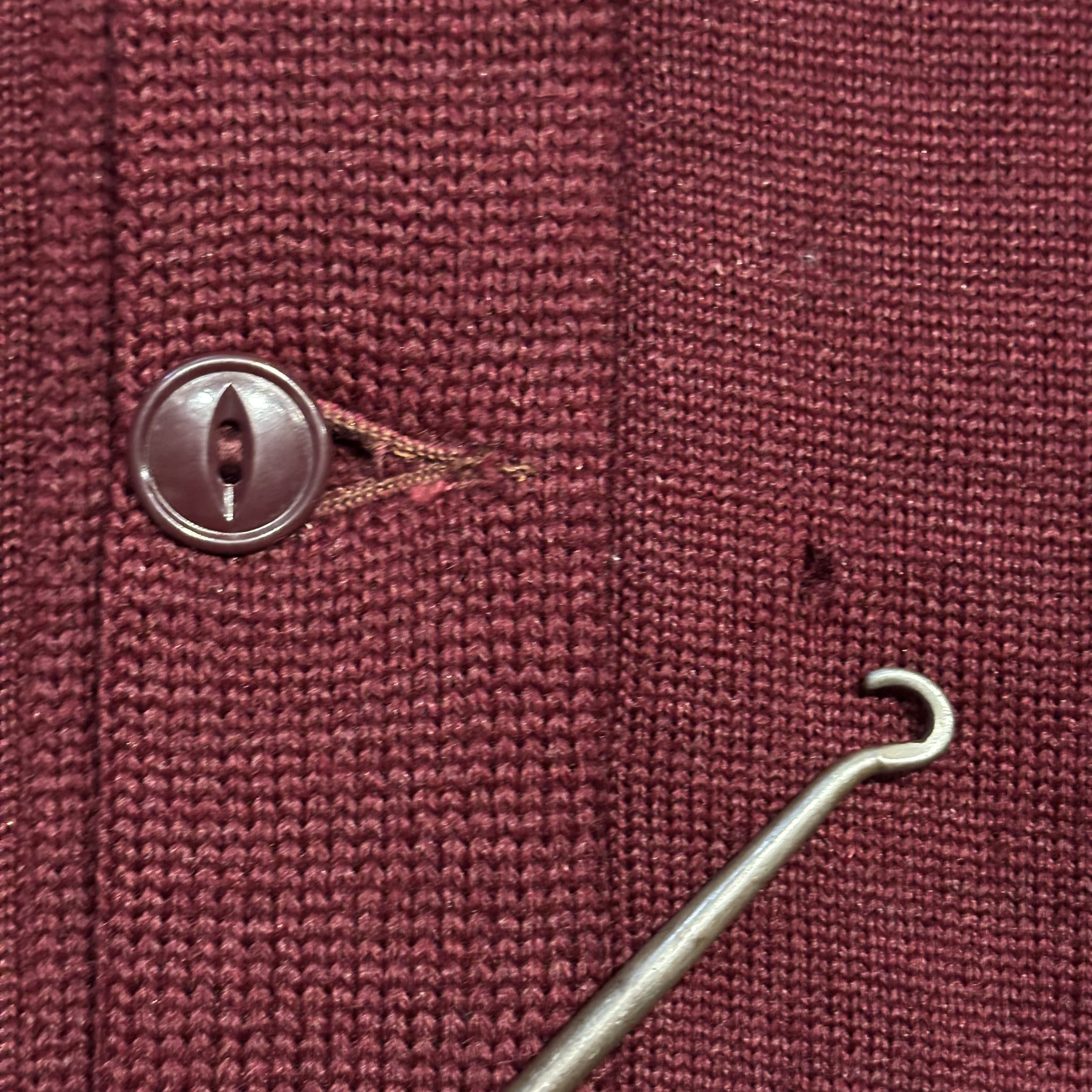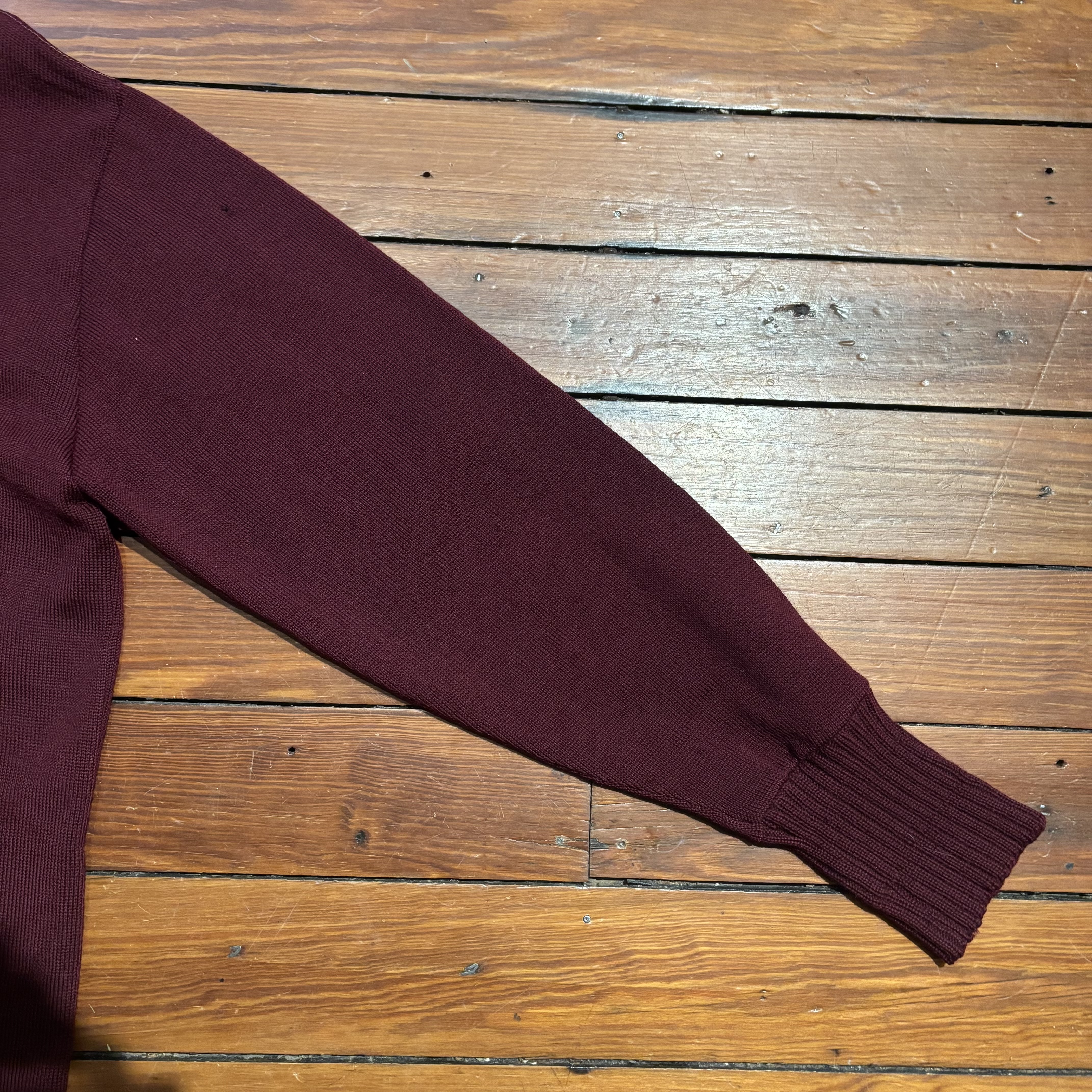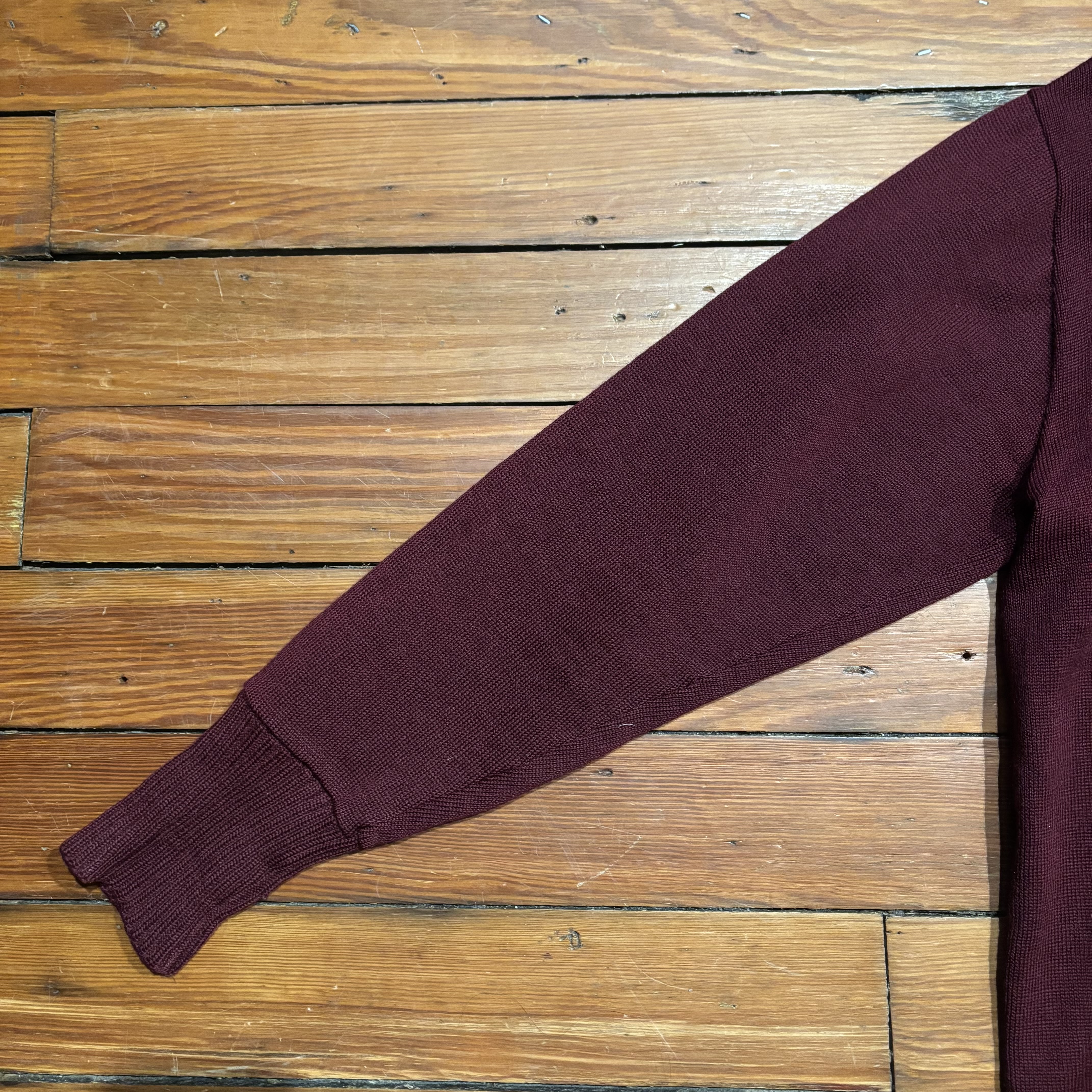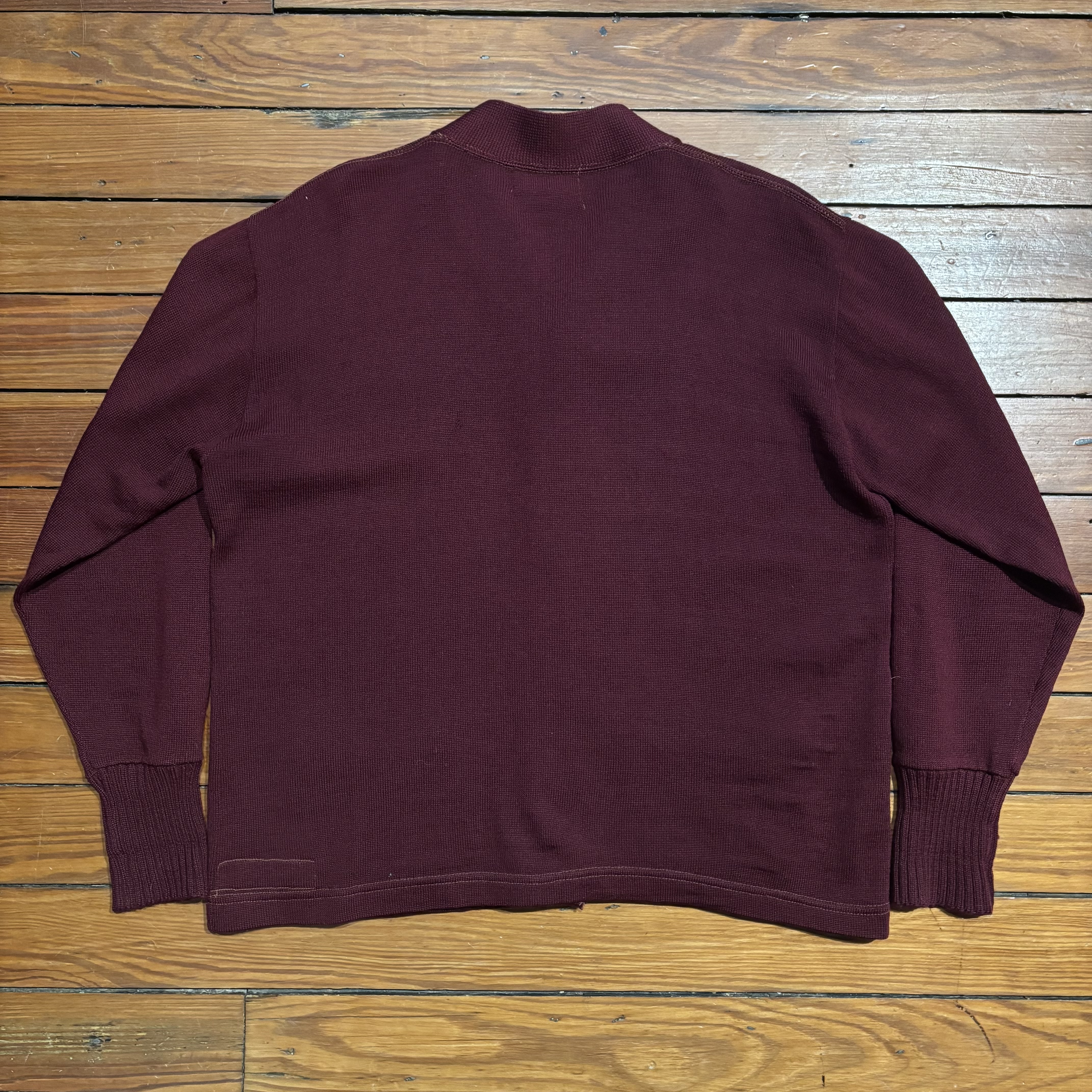 Vintage Bucks of Amarillo burgundy wool cardigan made around the 1940s. Garment features Cats eye buttons, interior name tag, and is made in Texas from 100% wool. Item has a few small holes, as pictured, but is in good condition overall. Cool, classic, ready to wear.