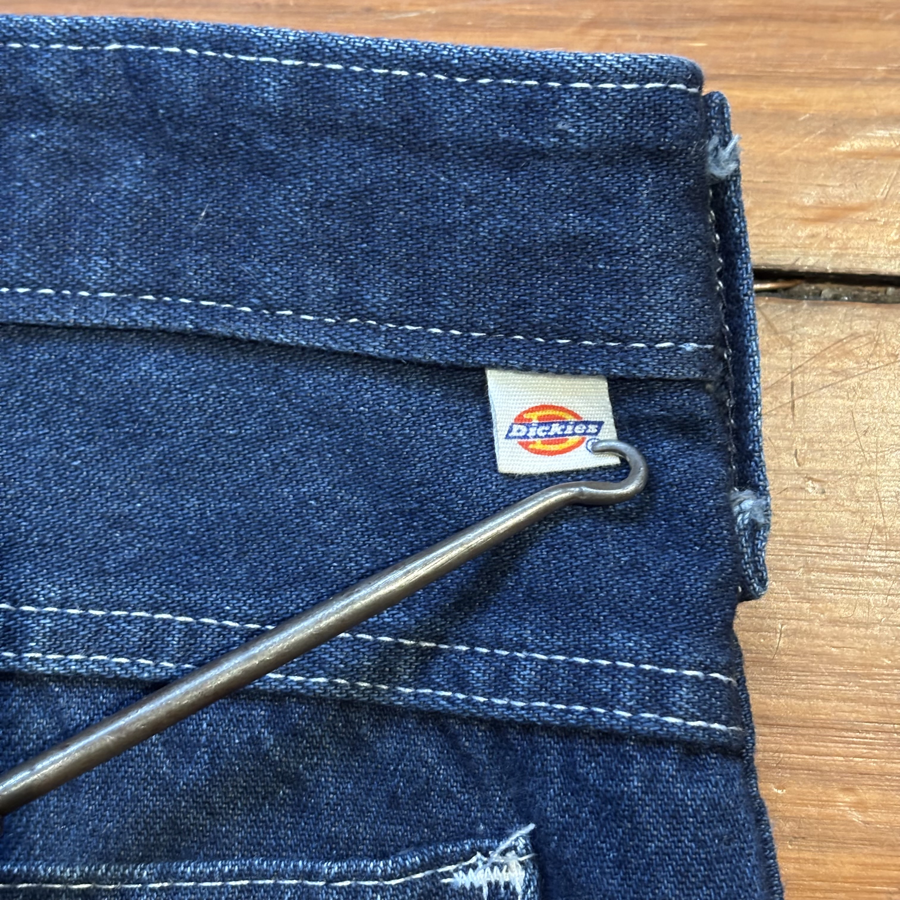Vintage pair of Dickies carpenter jeans from the 1980s. Garment features Talon zipper, hammer loop, and is made in USA from 100% cotton. Item has some minor wear but no major holes or stains. Crisp, durable, ready to wear.